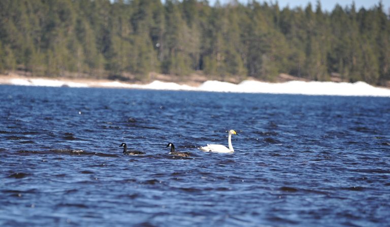западного берега залива. Кроме того, в апреле из-за большой удалённости 17 лебедей не удалось определить до вида, таким образом, есть вероятность, что среди них тоже могли быть кликуны.