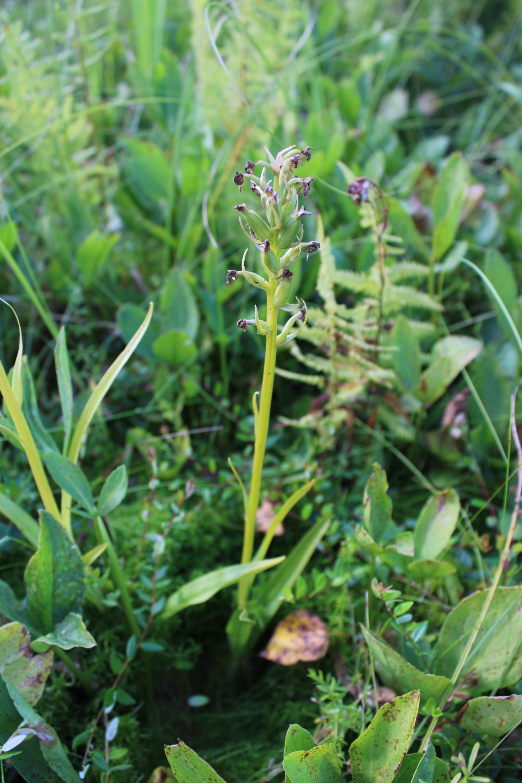 Здесь сосредоточено значительное количество представителей семейства орхидных – очень обычны виды, занесенные в Красную книгу Балтийского региона: Epipactis palustris (дремлик болотный) (рис. 3), Listera ovata (тайник овальный), Dactylorhiza fuchsii (пальчатокоренник Фукса) и D. maculata (п. пятнистый), изредка встречается Malaxis monophyllos (мякотница однолистная) (рис. 4).